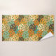 Este juego de toallas incluye un lavabo de color azul verdoso, una toalla de mano turquesa y una toalla de baño de diseño moderno de mediados de siglo con un adaptador de registro que se solapa en todas partes en tonos marrones, blanquecinos, marrones, naranjas, turquesas, azules y verdes.