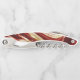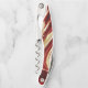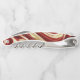 Un diseño artístico abstracto de aguas fluviales con colores rojo, dorado y blanco.