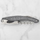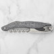 A denim imitation in a rough black and white texture. The bride and groom's names are printed in large, white lettering on both sides. The wedding date and location are also included.
