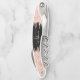 Femenino, elegante, con estilo, destellos de rosa dorado claro, 2 letras iniciales personalizadas, sacacorchos de camarero personalizado con monograma. Cuenta con un marco moderno de lujo con destellos de rosa dorado claro que gotea, una fuente de letra grande y doble (2) con monograma y florituras (en letras iniciales grandes), y un nombre en fuente tipográfica serif en rosa claro sobre fondo negro. Fácil de personalizar. Un regalo femenino y glamuroso ideal para novia, madre, cumpleaños, boda, fiesta de cumpleaños de 16 años, despedida de soltera, negocios y para cualquiera que le gusten las cosas brillantes y glamurosas.