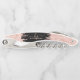 Elegante, femenino, con estilo, destellos de rosa dorado claro, 2 letras iniciales de monograma personalizadas, sacacorchos de camarero con monograma. Con un marco moderno de lujo con destellos de rosa dorado claro que gotean, un gran doble (2) tipo de letra de monograma con florituras (en letras mayúsculas grandes), y un tipo de letra serif con el nombre en rosa claro sobre fondo negro. Fácil de personalizar. Un regalo femenino y glamuroso ideal para novia, madre, cumpleaños, boda, fiesta de cumpleaños de sweet 16, despedida de soltera, negocios y para cualquiera que le gusten las cosas brillantes y glamurosas.