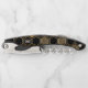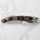 Este diseño contemporáneo presenta un patrón geométrico de colmena dorada, abejorros y un fondo de color negro.