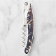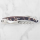 Secciones segmentadas en dirección aleatoria llenan esta obra de arte en marrón a negro con blanco. Esta obra abstracta de Jason Girard se titula esgrima.