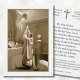 Recuerden a sus seres queridos en oración con esta hermosa oración de San Gertrude el Grande por las Santas Sagradas en Purgatorio. En la parte delantera hay una imagen del Señor Crucificado en la cruz, mientras un sacerdote ofrece el Sacrificio Santo de la Masa. Nuestra Señora está adorada junto con el sacerdote y el servidor del altar.