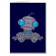 Personalizado vectorial ilustracion de un lindo pero triste robot pequeño con ojos azules sentados en el suelo.