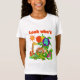 El diseño de Safari, alegre y colorido para los niños que aman los safaris en la jungla, incluye un león, una jirafa, plantas tropicales, sol, globos y texto que dice "¡Mira quién tiene 4 años!".