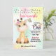 invitación de faux Gold 1st Birthday Los detalles del purpurina se simulan en la obra de arte. Este producto no será impreso con purpurina real. Invitación de cumpleaños número 10 invitaciones a fiestas de cumpleaños. Este divertido diseño cuenta con una jirafa dulce. Colores rosa, azul y dorado a la moda con un toque de purpurina de oro falso. Puede editar usted mismo esta plantilla de invitación de cumpleaños de chica.