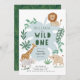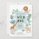 Con encantadores animales de bebé Safari, esta invitación para el primer cumpleaños destaca por sus suaves tonos azules y verdes. Nuestro diseño azul "Wild One" ofrece una manera espléndida de celebrar el hito significativo de su bebé. Haga clic en la opción de edición para adaptar este diseño a las especificaciones de eventos únicos.