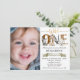 Invitación de un primer cumpleaños salvaje de Safari con tu foto. Haga clic en el botón "Personalizar" para obtener más información sobre esta plantilla. Podrá modificar todo el texto, incluidos el estilo, los colores y los tamaños, y cambiar la imagen.