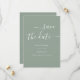 Presentamos nuestra minimalista y moderna boda Save the Date card, con un sereno color verde saga. ... La delicada caligrafía blanca le aporta un toque de sofisticación a esta tarjeta "Save the Date" del Mar de los Verdes, lo que lo convierte en una elección ideal para una celebración boda moderna. Seleccione el tipo de papel según su deseo antes de comprar.