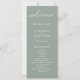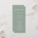 Presentamos a nuestro minimalista y moderno boda Presentamos nuestra minimalista y moderna tarjeta de programa de bodas, con un sereno color verde saga. La delicada caligrafía blanca añade un toque de sofisticación a esta tarjeta del programa "Sea of Green", lo que lo convierte en una elección ideal para una celebración boda moderna. Personalizar o edite más adelante haciendo clic en el enlace "personalizar más adelante" y utilice nuestra herramienta de diseño para modificar esta plantilla. Todo el estilo de texto, colores, tamaños se pueden modificar para adaptarlo a sus necesidades. seleccione el tipo de papel según desee antes de comprar.