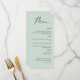 Elegante boda verde sabio o carta de menú de la recepción para la cena. Diseño contemporáneo, sencillo y elegante con una hermosa caligrafía escrita a mano. Color de fondo frontal y posterior en verde sabio y con letras en negro. Capacidad para cambiar el color de fondo frontal y/o posterior seleccionando "personalizar más adelante". Diseño disponible en una variedad de opciones de color. Parte de nuestra colección "Earthy Blooms in Sage Green and Terracotta" con una variedad de productos de coordinación disponibles, incluyendo tarjetas del plan de asientos y números de mesa.