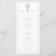 Designed with a vertical layout for clear readability, this menu card gracefully presents starters, main courses, desserts, and beverage selections. The ornamental botanical motif adds a subtle decorative accent while maintaining a clean, balanced composition, ideal for formal dinners, château receptions, garden weddings, or elegant city celebrations.