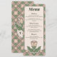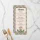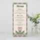 Elevate your wedding table decor with this exquisite Art Nouveau menu card. Designed with a sophisticated sage green and dusty rose palette, it features elegant botanical line art and a vintage-inspired border. This vertical layout provides ample space for your starters, main course, and dessert details, while the back showcases a stunning geometric pattern.