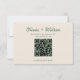 Tarjeta de gabinete RSVP de código QR de Boda verde de sabio | Elegante Greenery Digital Reply Optimiza tu planificación boda con nuestra elegante Tarjeta de Gabinete RSVP de Sage Green Boda QR Code! Esta tarjeta de moda cuenta con hermosos acentos de vegetación verde salada, que le dan un toque sereno y sofisticado a su suite boda. La inclusión de un código QR ofrece a sus huéspedes una forma cómoda y moderna de acceder a RSVP digitalmente, haciendo que el proceso de respuesta sea fácil para todos. Esta tarjeta RSVP es perfecta para parejas que aprecian tanto la elegancia clásica como la eficiencia moderna. Los tranquilos tonos verde sabio y los delicados ilustraciones botánicos evocan exuberantes jardines y una estética atemporal, ideal para bodas de jardín, rústicos o contemporáneos. Al dirigir a los clientes a su sitio web boda o a un formulario RSVP en línea mediante el código QR, simplificará el seguimiento de las respuestas y recopilará todos los detalles necesarios sin problemas. Personalizar fácilmente esta tarjeta de gabinete RSVP de código QR con la dirección URL del sitio web de su boda y las instrucciones específicas para sus invitados. Puede personalizar los tipos de letra y el diseño para que coincidan perfectamente con las invitaciones de boda principales. Imprimida en material de cartón de alta calidad, esta tarjeta complementará su suite de papelería de manera excelente. Coordine estas hermosas tarjetas de cierre RSVP del Boda Verde Sage con sus invitaciones principales, tarjetas de agradecimiento y otras papelería de boda para una celebración perfectamente coherente y memorable. Haga clic en "Personalizar ahora" para personalizar su tarjeta de gabinete RSVP de Sage Green Boda QR Code y simplificar la gestión de su boda. QR RSVP de color verde sage, tarjeta de respuesta de verde elegante, RSVP de boda digital, boda de código QR personalizado, recinto verde moderno, RSVP de boda botánica, tarjeta verde sabio rústico, boda RSVP en línea, papelería de boda verde verde, boda de código QR respuesta