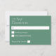 Envíe esta elegante y acuarela Sage Green MOD Caligraphy RSVP con sus invitaciones para bodas y fiestas, incluyendo fiestas de graduación. con un fondo blanco. Consulte nuestra colección para ver la opción de la comida.