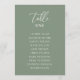 La moderna y elegante carta de asientos por mesa presenta un diseño minimalista en color verde y blanco. Personalice con los nombres de su invitado y los números de tabla con la plantilla fácil de editar que incluye un tipo de letra de guión elegante y un tipo de letra serif elegante. Consulte los elementos que coinciden en la colección "Sage Green Modern Elegant".