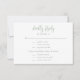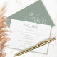 Este sabio botánico de flor silvestre RSVP verde y blanco es elegante y sencillo. El frente es mínimo con tipografía de guiones. En la parte trasera se exhibe la misma delicada y audaz floral que se muestra en tu invitación.