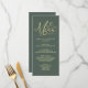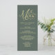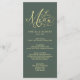 En este elegante menú, una fantástica tipografía dorada en un verde sabio. Puede agregar sus detalles en el menú personalizar. Este menú forma parte de una hermosa suite boda a juego que puede ser totalmente personalizada.