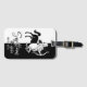 Elegante etiqueta de equipaje sagittarius zodiac en blanco y negro.