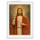 Imagen vintage religiosa del Sagrado Corazón. Cristo rodeado de halo brillante y vigas de luz.