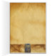 Una descripción única y fantástica de San Miguel Arcángel como caballero medieval. Míatura medieval francesa XV c. Un diseño elegante y clásico con efectos pergaminos antiguos.