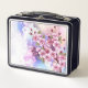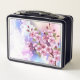 Dibujado artísticamente, rama de rosa, flores de cerezo sobre fondo pintoresco, texturizado, pintado con pintura blanca, rosa y azul. Pink Sakura