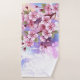 Dibujado artísticamente, rama de rosa, flores de cerezo sobre fondo pintoresco, texturizado, pintado con pintura blanca, rosa y azul. Pink Sakura