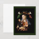 Bonito arte vintage para las vacaciones de Messina. Madonna sostiene al Bebé Jesús como un ángel que acoge adoración desde arriba.