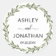 Guión de caligrafía encantadora gracias boda, pegatinas matrimoniales/sellos para añadir a sus sobres, invitaciones, tarjetas y/o favores de regalo. Verde, vegetación, corona, laurel sobre fondo blanco. Perfecto para cualquier boda temático de primavera, primavera o verano. Etiquetas de plantilla modificables.