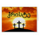 El nombre santo del ქრისტე de Jesús en georgiano en un fondo impresionista hermoso del estilo del Calvary en la salida del sol. Gran diseño para Pascua.