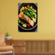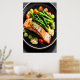 Salmón con espárragos y tomates. Este es un arte generado por IA.