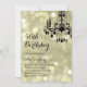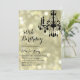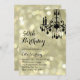 Una lujosa lámpara de araña sobre un fondo de luces doradas acentúa esta invitación de cumpleaños.
