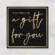 Certificado de regalo de moda en negro y oro con espacio para tu logo, iconos de medios sociales y detalles de tu empresa. Perfecto para usar como salón de belleza personalizado o certificado de regalo de spa para su barra de pulpa, frente o uñas. Los efectos de oro falsos y el tipo de letra de escritura moderno que escribe 'un regalo para ti' le dan un toque de alegría a esta plantilla de bonos de regalo de negocios, perfecta para impresionar a tus clientes.