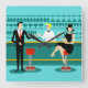 Cada hora es feliz con este reloj de pared acrílico del salón de cócteles Retro. El diseño moderno de mediados de siglo presenta un vibrante estilo de los años 60, minimalista y personalizado de un elegante bar de cócteles. En el fondo de una pared acuática, se pueden ver filas de vasos de bebida. Al menos podemos ver las siluetas verde azuladas de los vasos de bebida. A juzgar por las formas de los tallos, este bar está bien equipado para mojar tu silbato, sea cual sea tu preferencia por la bebida. Un camarero muy competente y muy agradable se encarga del bar verde azulado con acentos amarillos. El joven camarero lleva una camisa blanca y prístina con corbata de arco negro. Su buena apariencia de cara fresca, su pelo rubio y sus gafas de hipster negro nos dan todas las razones para creer que pasa sus días como actor en dificultades o superhéroe. Por un lado, el guapo mixólogo está entregando un martini a un cliente del lado opuesto del bar. El cliente que espera es un caballero de hombros anchos con un traje negro y corbata roja. Es el tipo de tipo que se describe como alto, oscuro y guapo incluso cuando faltan horas para la hora de cierre. Parece haber un taburete rojo y cromado con el nombre del señor Debonair. Sin embargo, para no ser presuntuoso, se pregunta: "Perdóname. ¿Está ocupado este asiento?" Le está pidiendo a la chica de pelo cuervo en el taburete del bar vecino. Ella es una verdadera "chica de al lado", si resulta que vives al lado de una belleza impecable con una figura que no renunciará. Lleva puesto un vestido negro y sostiene un martini en una mano. Ella espera que ella y el caballero que se acerca tengan más en común que su preferencia por la bebida y la elección del color del armario. Parece que esta noche se puso interesante. ¡Salud!