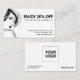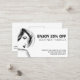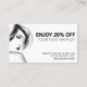 Esta tarjeta de descuento para peluquería profesional en blanco y negro ofrece un ambiente de negocios y acogedor. Añada la información de su empresa para que coincida con su imagen de marca. Todas las partes de esta tarjeta de descuento se pueden editar fácilmente con su propia información. Dé a sus clientes una recompensa especial por su negocio y fidelidad. Las tarjetas de regalo y de descuento animan a repetir el negocio.