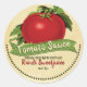 Imagen de tomate con hojas de cosecha que aparece en esta etiqueta para sus salsas, tomates guisados o salsas, personalizada con su nombre, título de comida y otro texto, perfecta para enlatamiento en casa y entrega de regalos.