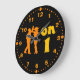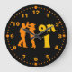 Este singular reloj de pared personalizado es perfecto para los amantes de la danza latina que piensan que en cualquier momento es el momento perfecto para bailar salsa. El reloj tiene una silueta naranja de una pareja haciendo un giro o un giro submarino y dice "en 1". Esto es para la gente que baila estilo L.A., salsa en uno. Hay puntos para los minutos y números naranjas. Haga clic en personalizar para cambiar el estilo de fuente o el color de los números. Puede cambiar el color de fondo si desea personalizar el reloj. Más relojes personalizados con salsero, salsera y diseños de bailarina en la sección Bailando del lápiz de Alina.