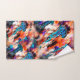 Magnífica medusa azul vibrante con un colorido fondo marino de tonos rojos.