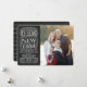 Exquisita y floreciente tiza con letras en un fondo de pizarra, junto a tu foto favorita, para los saludos de Año Nuevo. Para una personalización adicional, agregue una foto adicional a la parte posterior sobre el patrón. Asegúrese de buscar artículos de coordinación en la colección Cheers! de Laura Bolter Design.