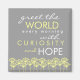 Saluda al mundo cada mañana con curiosidad y esperanza. Un mensaje encantador (encontrado en una galleta de la fortuna) que nos recuerda mantener una mente abierta y un corazón abierto.