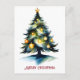 Pintura de un árbol de navidad adornado con tarjeta de saludo