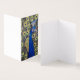 Una carta de cumpleaños o de bienvenida con el arte original de un bello pavo real.