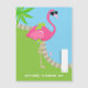 Tarjeta de felicitaciones magnéticas de verano personalizada con un flamingo rosa brillante con gafas de sol.