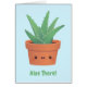 Una divertida tarjeta de saludo para enviar tus saludos y hola a un amigo. Viene con una ilustración de una adorable planta de aloe vera naranja en maceta con el saludo humorístico "¡Aloe There!". Perfecto si al destinatario le encantan las suculentas o los juegos de palabras. El color de fondo se puede cambiar.