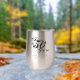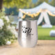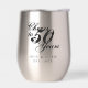 Saludos a 50 años de regalo de aniversario de boda Thermal Wine Tumbler para la pareja. Diseño personalizado con diseño de tipografía rústica. Los regalos personalizados para amigos y familiares. Plantilla de tipografía de época durante 50 años. Color de fondo personalizado o acero inoxidable. edad y nombres de personalizable.