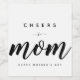 Elegante y personalizada etiqueta vinícola en blanco y negro de Cheers to Mom en moda moderna, estilo tipográfico minimalista. Genial para el Día de la Madre.
