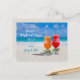 Playa tropical, animaciones a las postales de año nuevo. Dos bebidas en una playa tropical están decoradas con estrellas de mar y holly. Personalizar el saludo y agrega una firma. En la parte posterior de las tarjetas se proporciona una plantilla de dirección o se puede eliminar ese texto.