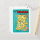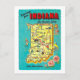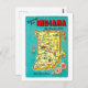 Esta postal es una reproducción de una postal de mapa vintage que muestra el estado de Indiana y su flor estatal, la peonía.