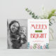 Una moderna tarjeta de felicitación vacacional con las palabras "Merry and Bright" y un ilustracion follaje para Navidades. Personalizar con tu propia foto. La mayoría de los elementos/tipos de diseño se pueden mover/cambiar/eliminar según su elección/preferencia. Contáctame en sika_273@yahoo.com si quieres la tarjeta en un color o tamaño diferente. ¡Gracias por navegar!